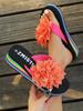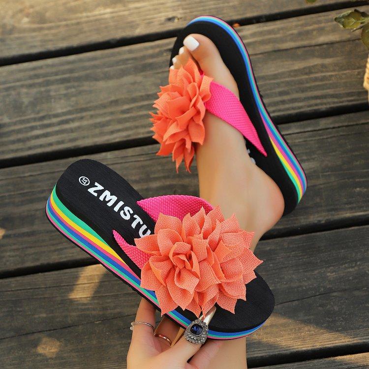 Flip-flops women's summer rainbow flower thick-soled sandals with colorful soles, women's shoes casual beach slippers