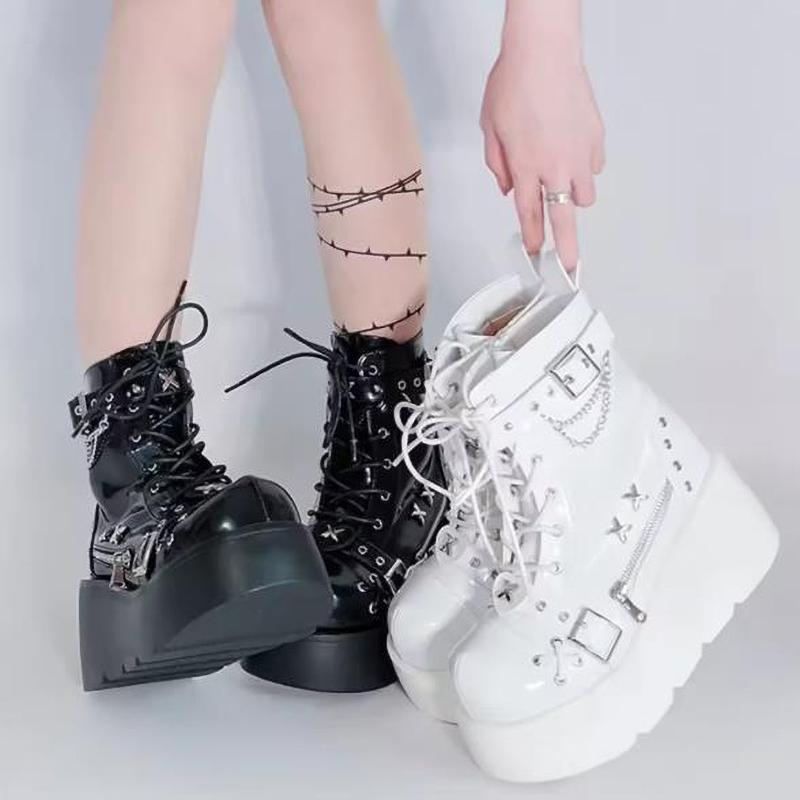 Gotisk Stil Plattform Vampyr Cosplay Dame Midt på Leggen Støvletter Vinter Kiler Komfortable Dame Motorsykkel Støvletter Sko