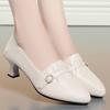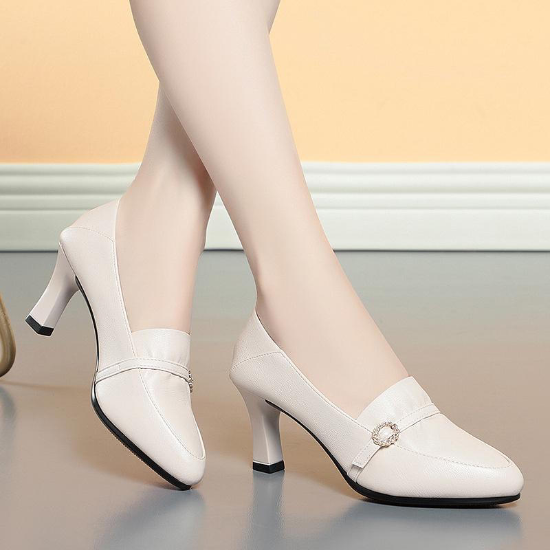 Spring Causal Comfort Loafers Shoes Women Medium Heels Leather Black Work Professional Single Shoe New Soft Leather Shoes