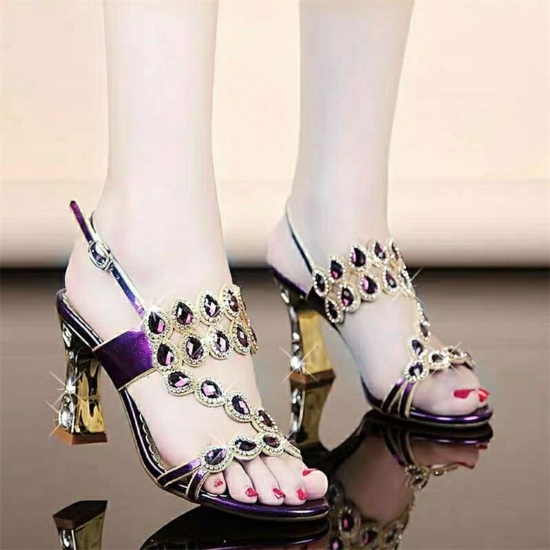 High Heels temperament Sandals Women Summer Woman Party Shoes Fashion brick crystal thick heel Square Heel Sandals