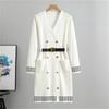 French style knitted cardigan, mid length skirt, women's spring and autumn 2025 new fashionable long sleeved dress