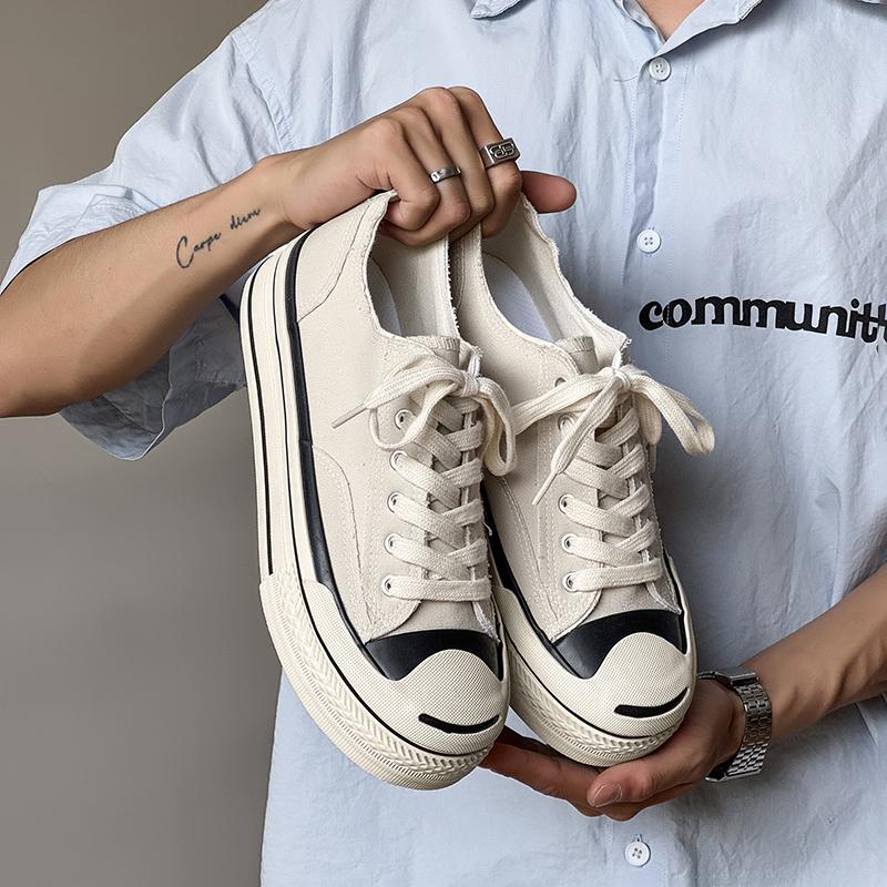 HKDQ Classic White Canvas Shoes Unisex Platform Vulcanization Sneakers Men Women Breathable Casual Sneakers Men's Sports- Shoes*