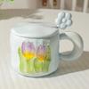 High Value Ins Style Tulip Cup for Girls Cute Ceramic Mug with Lid Spoon Couple Home Coffee Cup