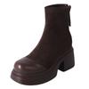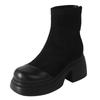 Dameskoletter Plattform Nye 2024 Tykksålede Blokkhæler Kort Støvlett For Damer Mote Flokk Svarte Høst Vinter Sko Kvinne