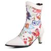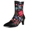 Autumn Spring Mid-calf Boots Women 2025 Fashion Flower White Black Short Boot Ladies Elegant Heels Point Party Shoes for Girls