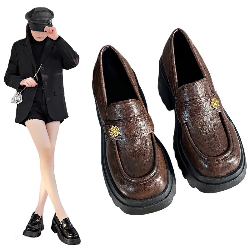 Thick Soled Black Small Leather Shoes for Women 2025 New British Style Thick Soled High Heels Fashion Trend Casual Loafers