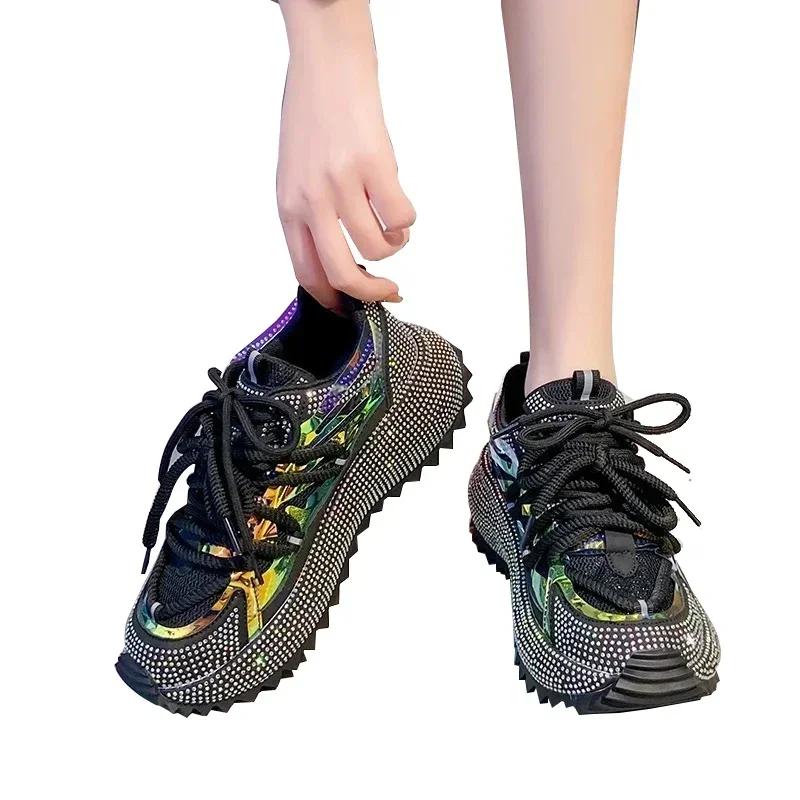Spring Autumn Women Casual Sneakers Designers Rhinestone Diamond Thick Bottoms Shoes Female Tennis Trainers Jogging Walking Shoe