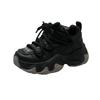 Svarte Dame Chunky Lær Sneakers Høy Plattform Ulzzang Sportssko Ny 2025 Vår Tykk Såle Dame Kile Fritidssko