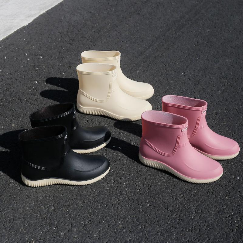 New rain shoes women's fashion models wear water shoes outside work adult warm women's rubber shoes overshoes short rain boots