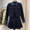 Omfavn den klassiske amerikanske collegestilen med dette tredelte ensemblet designet for den moderne, moteriktige kvinnen.. Dette settet inkluderer en kort blazer, et høytlivsskjørt med slankende plisseringer og en matchende topp, alle laget av polyestermateriale.. Det dekorative trykket tilfører et snev av sofistikasjon og individualitet, mens den sporty stilen sikrer komfort og allsidighet.. Dette antrekket er perfekt for både vår og høst, og kombinerer uanstrengt tradisjon med moderne stil.