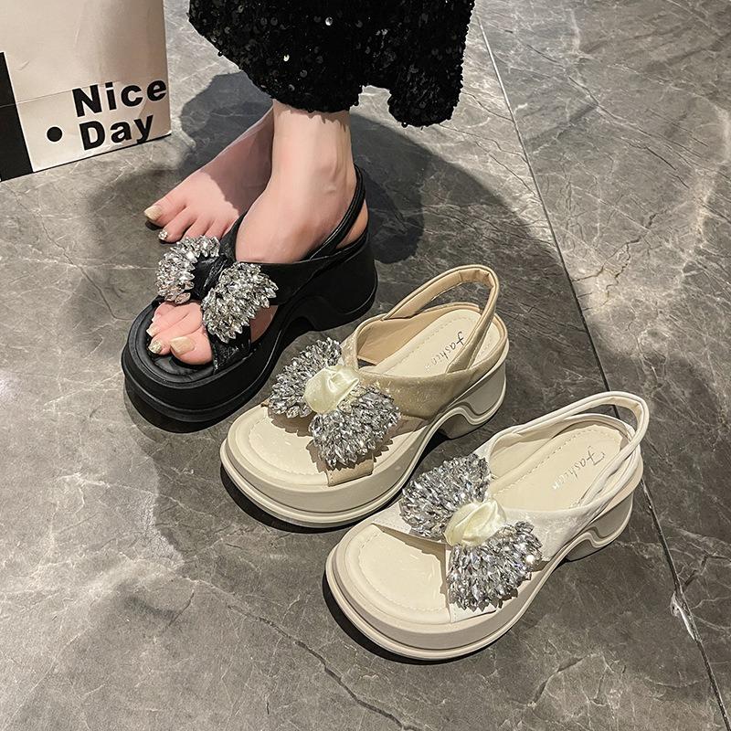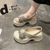 Beautiful thick-bottomed cool slippers for women to wear new summer rhinestone bows with skirts to increase the height of slippers