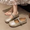 Niche soft sole with silver Mary Jane shoes women's summer flat heel women's round head rhinestone shoes