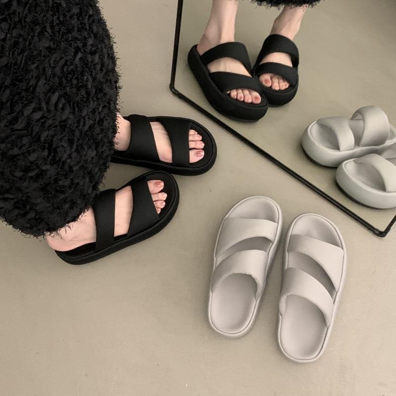 Cool slippers for women to wear in summer, new thick-soled heightening beach sandals, maternity bread flip-flops