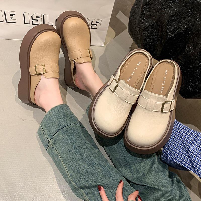 Thick-bottomed belt buckle increases height, lazy person pedal bag head slippers women's spring new versatile outer wear