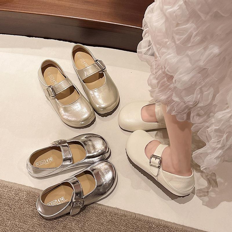 Round head with skirt flat bottom small leather shoes women's summer new super soft retro beanie shoes Mary Jane shoes