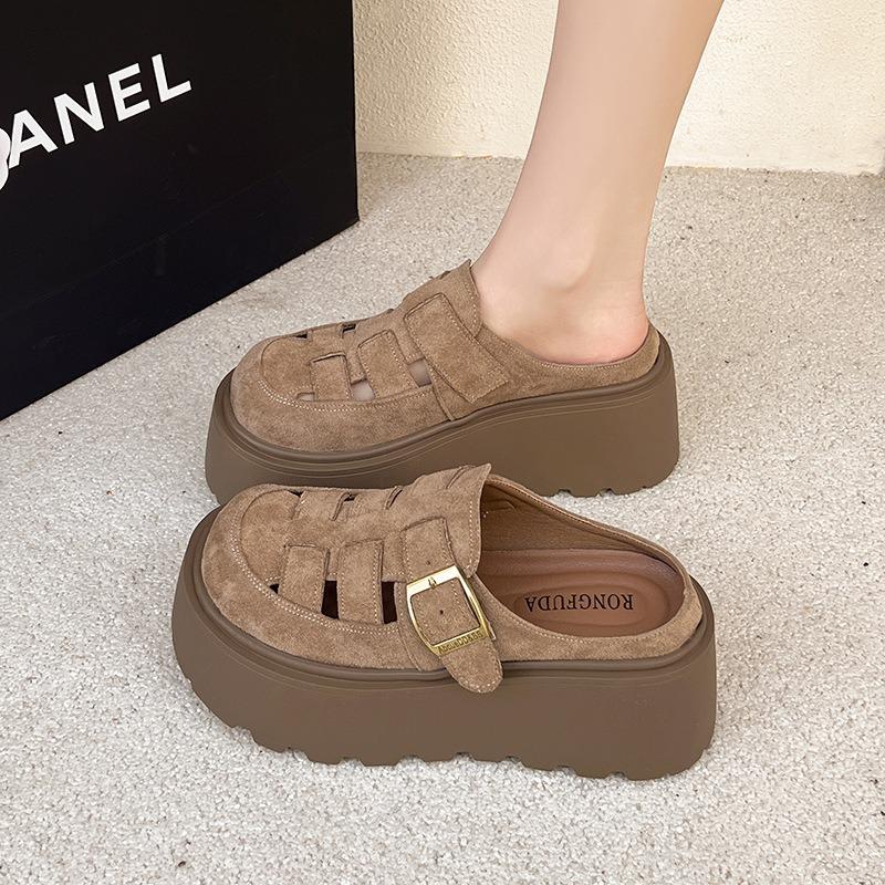 One pedal retro style thick-soled bag head soft-soled slippers women wear summer new pig cage cool slippers women