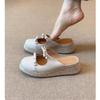 Straw thick-soled fisherman's shoes women's summer new heightening bow shallow mouth one-word bag head slippers