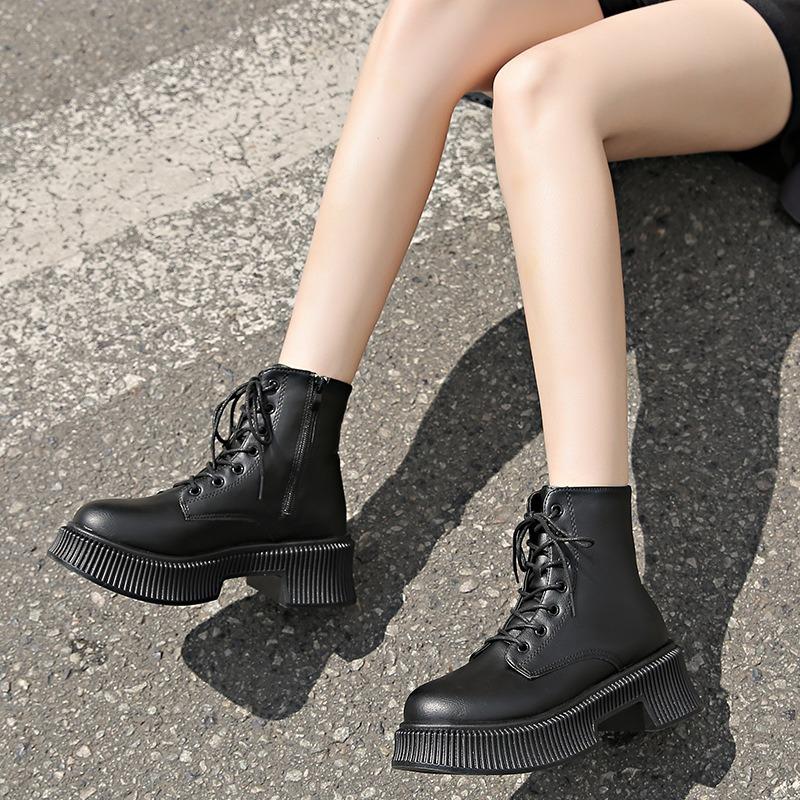 Martin boots women's new thick-soled round-headed white short boots large-size thick-soled short boots