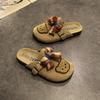 Cute bear bow slippers summer new retro niche design flat plaid college style shoes