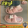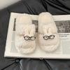 Cute cartoon eyes rabbit thick sole one-word fluffy shoes season fashionable retro casual solid color girls cotton slippers