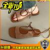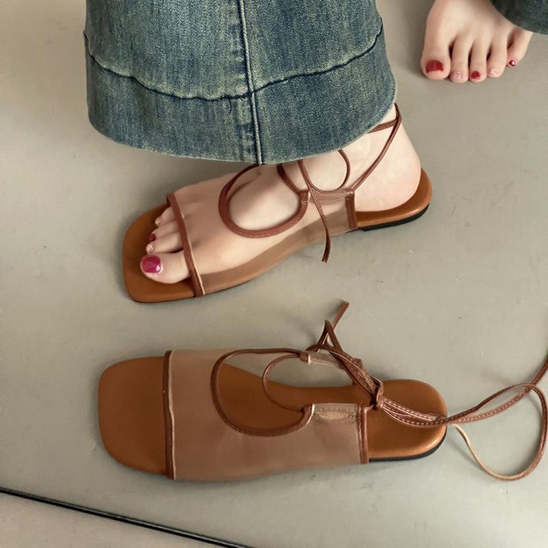 Fashion retro niche design breathable mesh flat-bottomed sandals women's summer new outer wear lace-up beach shoes