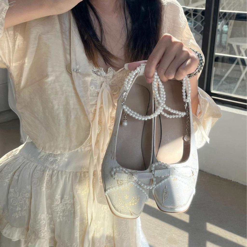 Mary Jane shoes women's new bow high heels women's single shoes thick heel cheongsam shoes