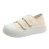 Summer thin breathable Velcro canvas shoes women's niche versatile step heel two wear platform biscuits white shoes