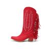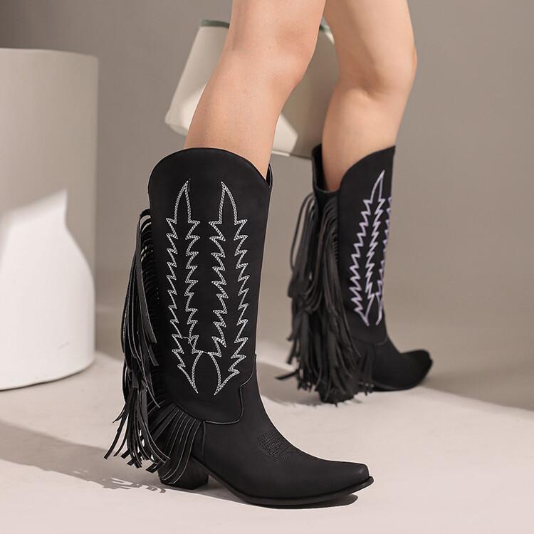 Autumn and winter retro style embroidered fringed boots pointed middle heel tall fashion boots