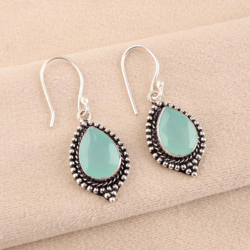 Akvakalsedon Edelstein 925 Sterlingsølv Håndlaget Smykke Øredobber For Kvinner EE-164-20