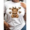 Fritidskomfortabel passform topp dameaktivtøy tegneseriebjørn mønstertrykk kortarmet t-skjorte