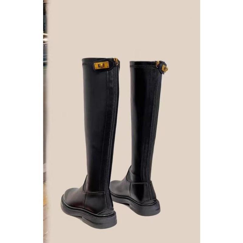 Damesko, Lange støvler, Damesko med tykke legger, Ny stil, Høye støvler, Lange støvler med gylden spenne