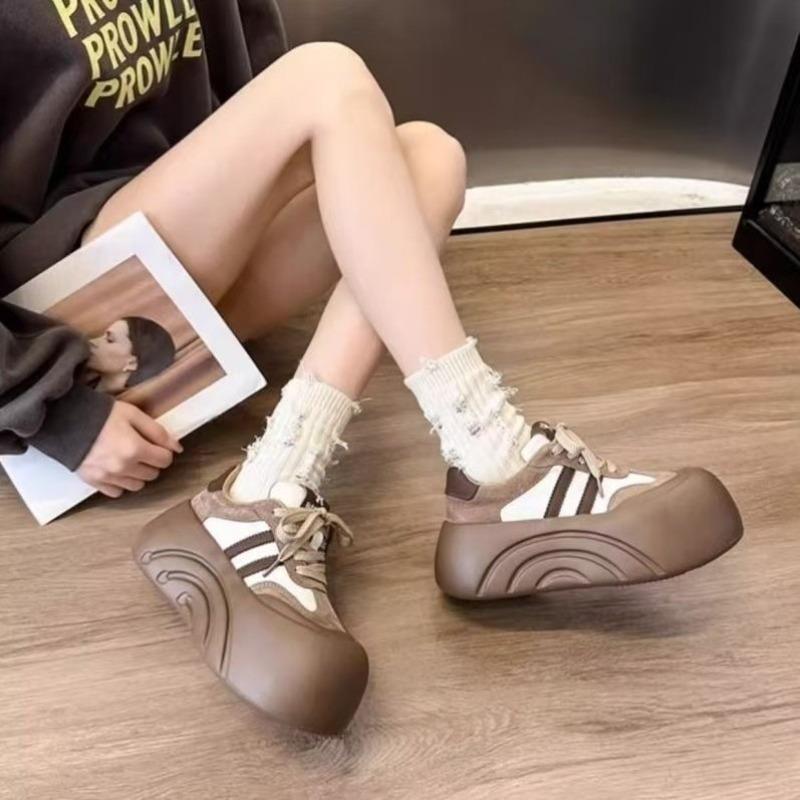 Maillard brun plattform styggsøt stort hode brødsko damesko høst ny muffins bunnplate sko