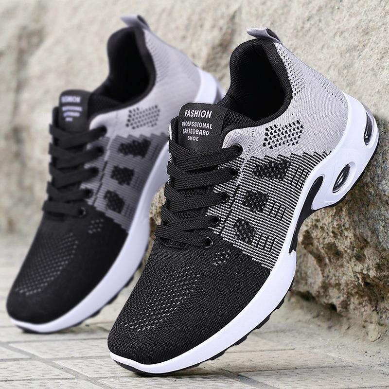 Shoes men's sneakers spring new sneakers men's shoes fly-woven air cushion shoes lace-up lightweight running shoes
