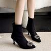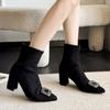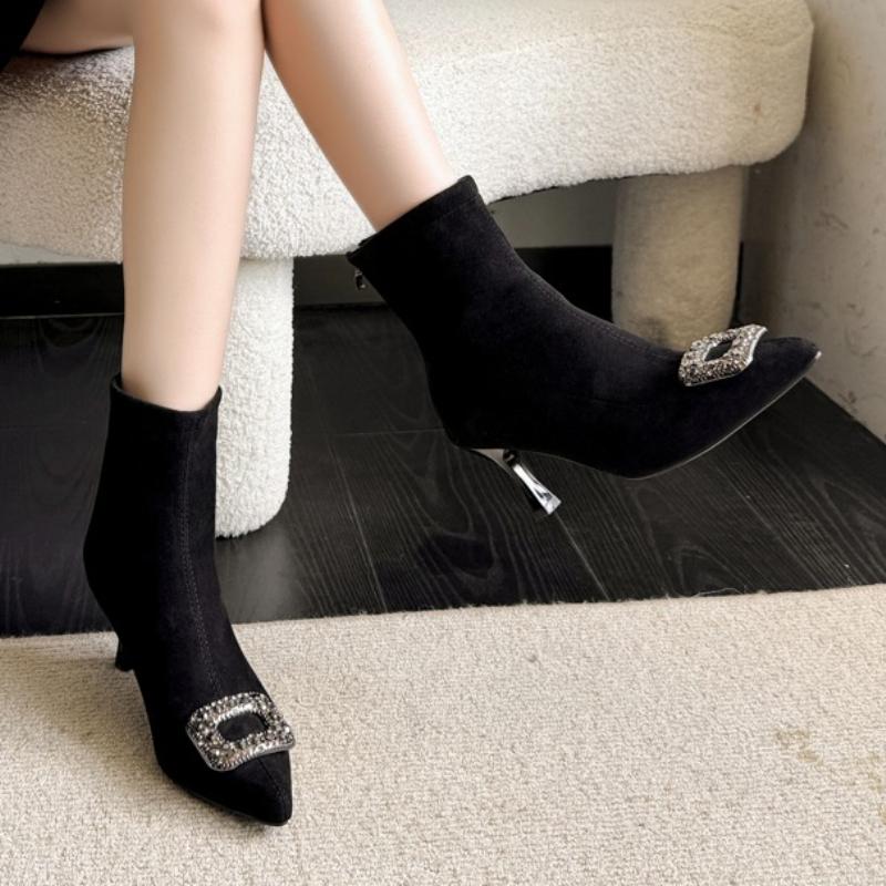 Fashion Women's Square Buckle Rhinestone Elastic Socks Boots Women Autumn Winter Suede Square Toe Thick Heel Ankle Boots Zapatos Mujer