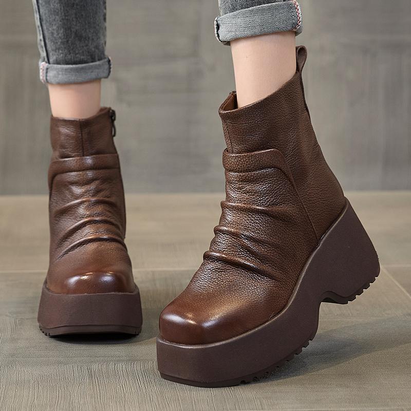 Mote GKTINOO Ekte Skinn Plattformstøvletter Vår Høst Håndlagde Tykksålede Korte Støvletter Høydeøkende Rund Tå Damesko