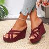 Fashion 2025 Summer New Women's Open Toes Fashion Wedge Heel Thick Soled Sandals Breathable Comfortable Cross Strap Beach Cool Slippers