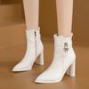Fashion Women' Ankle Boots Autumn Chunky High Heel Short Boots Fashion Pointed Fashion Side Zipper Platform White Boots