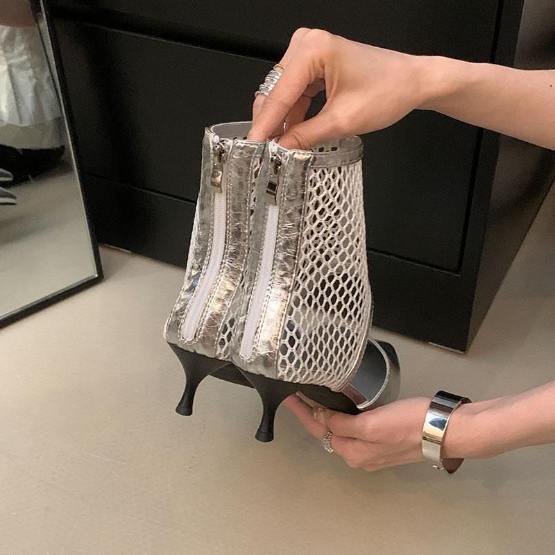 Fashion Female Low Heel Footwear Women Ankle Sandals Boots Shoes Zippers Fashion Pointed Toe Modern Ladies Sandals Booties Heeled Shoes