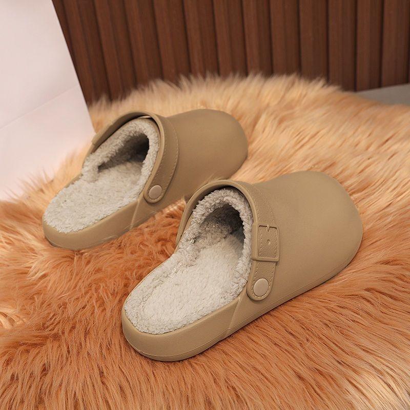 Platform shoes with one foot on lazy shoes, wearing retro bag head and velvet half slippers, women's new autumn and winter models