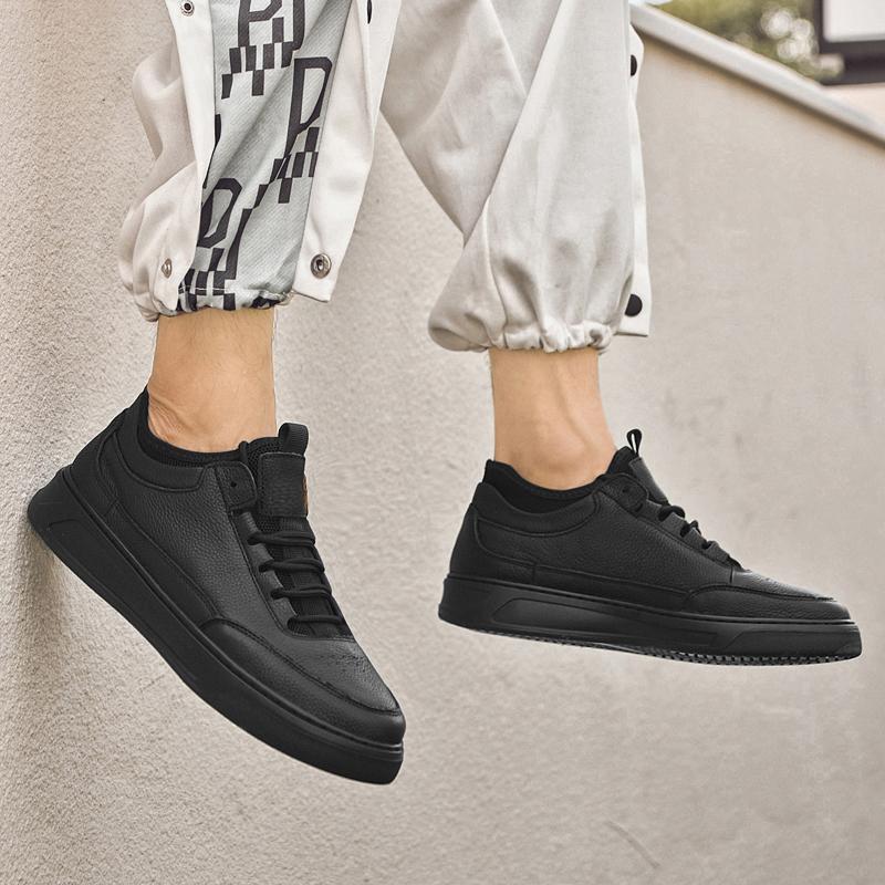 Fashion Genuine leather casual men's shoes Trendy and versatile minimalist design daily high-quality Outdoor leisure sports Black shoes
