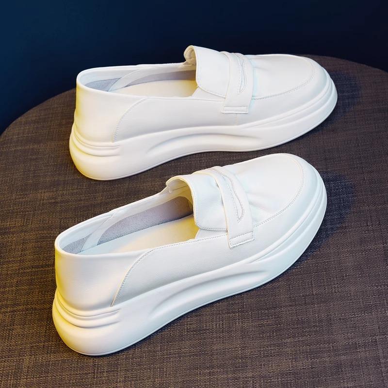 All cowhide little white shoes women's thick-soled leather inner height increase summer breathable thin one pedal student