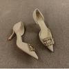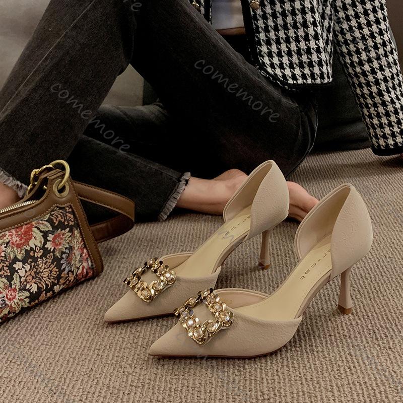 Fashion Comemore Black Rhinestone High Heels Spring Autumn New Women's Shoes Temperament Pumps Square Buckle 8cm Stiletto Heels Women