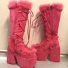 Mote Nye Vinter Dame Snøstøvler Plattform Kile Høy Hæl Fuskepels Dame Sko Kvinne Plysj Varm Sklisikker Midtlegg Støvler Goth Sko