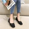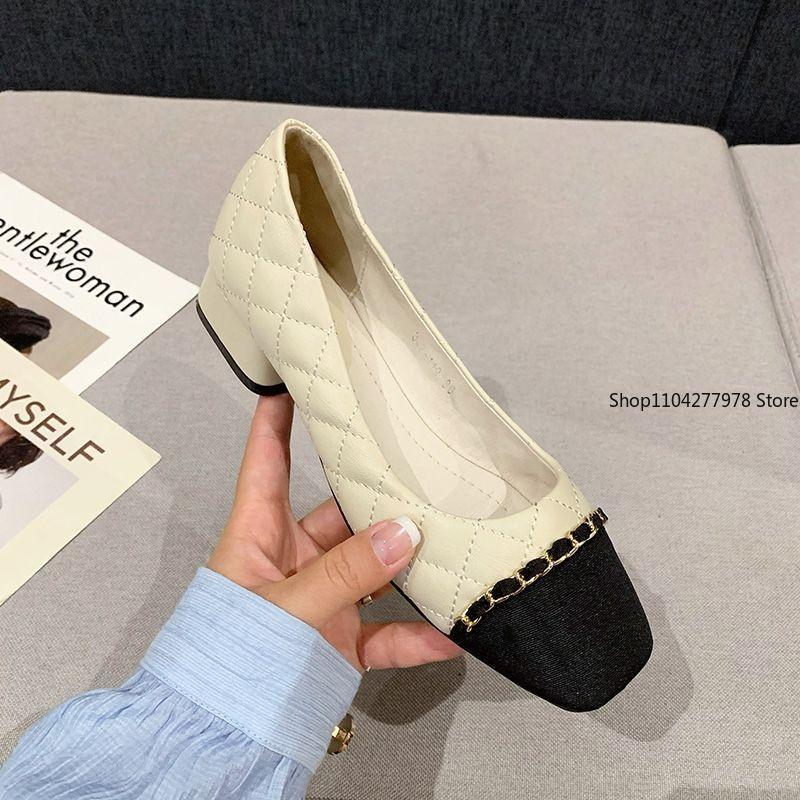 Fashion Office Woman Footwear Beige Fashion Leather Casual Shoes For Women Block Heel Square Toe Low Elegant Popular Vacation Spring Y2k