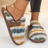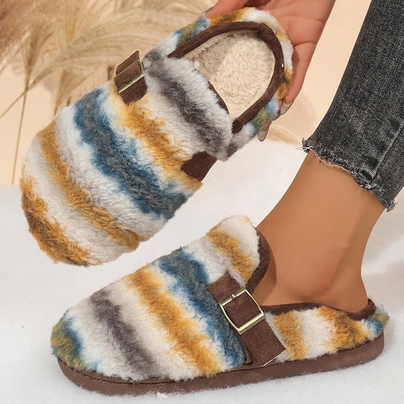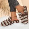 Mote Mote Stripete Bomullstøfler Kvinner Lukket Tå Slip On Plysjtøfler Kvinne Vinter Innendørs Sklisikre Varme Plysjtøfler Dame