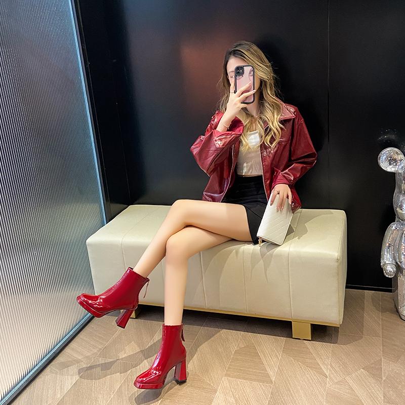 Fashion Fashion high-heeled ankle boots for women 2025 New style square-toed, thick-heeled, waterproof platform fashion ankle boots