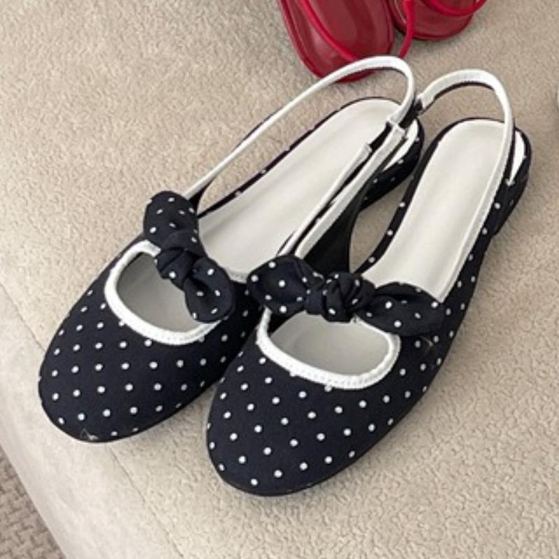 Fashion Sweet Butterfly Knot Low Heel Pumps Women Fashion Polka Dot Slingback Brand Designer Shoes Elegant Comfort Shallow Flat Sandals