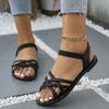 Mote Moteable Tanga Casual Flate Sandaler for Kvinner Pluss Størrelse Damesko Ny Stil Flettet Fot Elastisk Bånd Romerske Strandsko