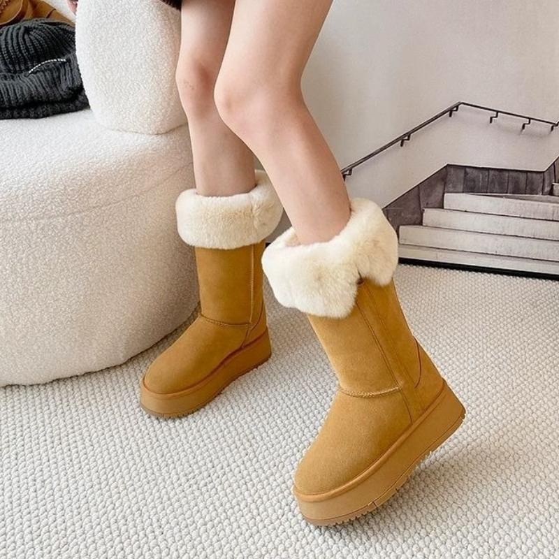 Fashion Winter Half High Chunky Women's Snow Boots Round Toe Plush Ladies Shoes 2025 Novelty Comfortable and Elegant Fashion Chic Boot