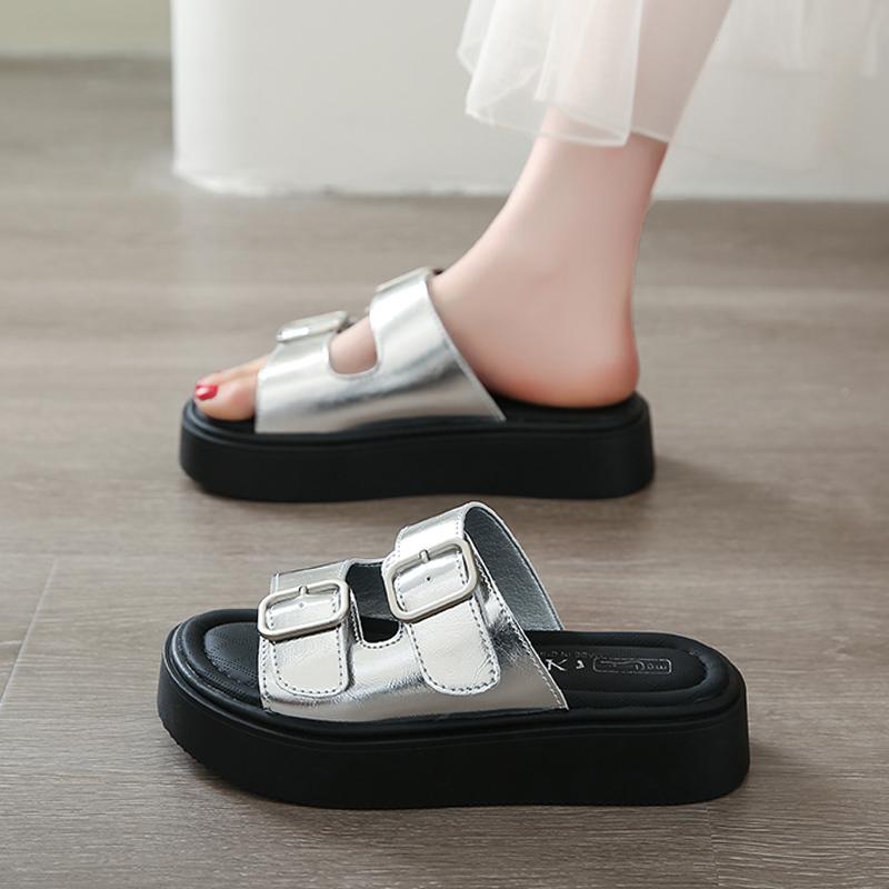 Fashion CRLAYDK Womens Fashion Slides Ladies Platform Slippers for Summer Open Toe Sandals Adjustable Double Straps Beach Walking Shoes